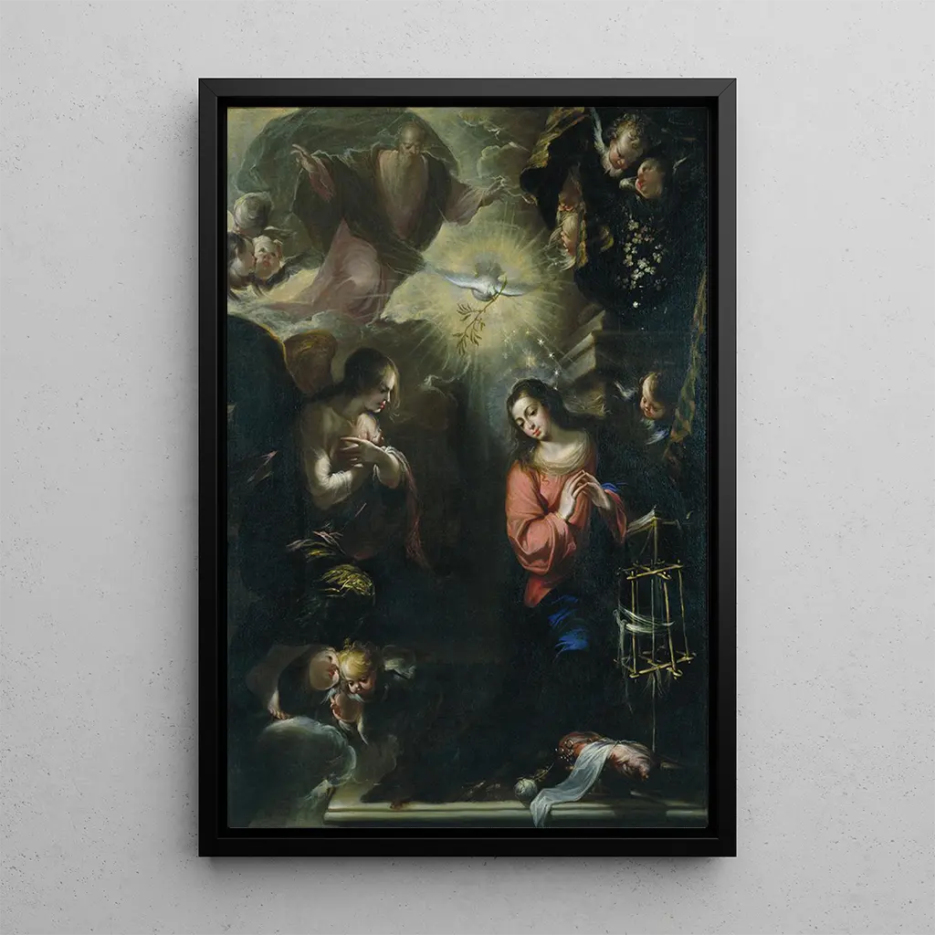 L'Annonciation de Francisco de Solís est une œuvre qui capture l'instant sacré où l'arkangelo Gabriel annonce à la Vierge Marie qu'elle concevra le Fils de Dieu. La composition est marquée par des couleurs vives et une lumière douce qui enveloppe les personnages, créant une atmosphère à la fois sereine et mystique. Les détails minutieux des drapés et des expressions faciales témoignent d'une maîtrise technique impressionnante. La scène est remplie de symboles, tels que le lys, représentant la pureté, et le livre ouvert, symbole de la parole divine. Cette toile invite à la contemplation et à la méditation sur le mystère de l'incarnation.