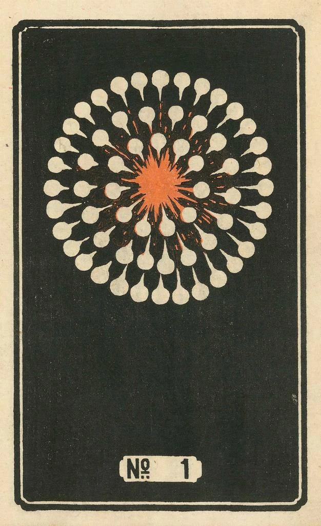 Jinta Hirayaman taidegrafiikan "Feux d'artifice nocturnes n° 1" jäljennös herättää maagisen kohtauksen, jossa kirkkaat värit valaisevat yötä. Rakennelmat, esitettynä niin elävästi, vaikuttavat melkein kuin loistavan kankaalla, luoden juhlavan ja iloisen ilmapiirin. Hirayaman tekniikka, joka käyttää rohkeita siveltimen vetoja ja kirkkaita sävyjä, mahdollistaa energian ja jännityksen kokemisen ilotulitusesityksestä. Jokainen väri-eksplosio on kutsu unelmointiin, kuljettaen katsojan juhlan ja ihmetyksen maailmaan.