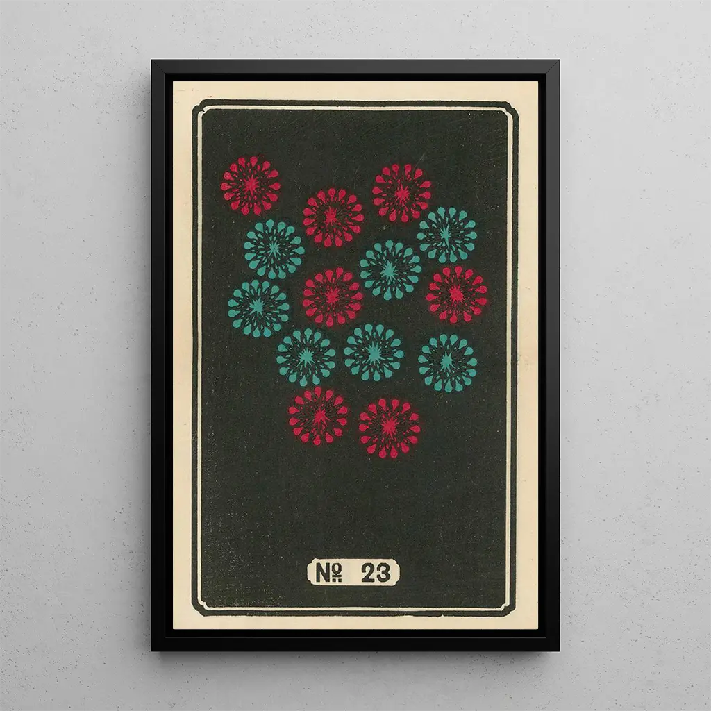 Jinta Hirayaman "Feux d'artifice nocturnes n° 23" vangitsevat tähdellisen yön olemuksen, jossa kirkkaiden värien räiske valaisee tumman taivaan. Tämä taidegrafiikka, toteutettu hienovaraisella tekniikalla, käyttää syvän sinisen, kirkkaan punaisen ja kimaltelevan kullan sävyjä luodakseen juhlavan ja taianomaisen tunnelman. Taidegrafiikan abstraktit muodot näyttävät tanssivan, viitaten iloiseen ja hetkelliseen juhlaan. Jokainen sivellinvedos paljastaa tunteen, kuljettaen katsojan maailmaan, jossa kauneus ja ihme kohtaavat.