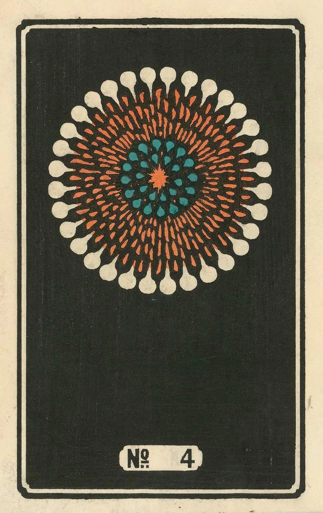 Les "Feux d'artifice nocturnes n° 4" de Jinta Hirayama vangitsevat yön, jossa värit räjähtävät visuaalisessa sinfoniassa. Taidegrafiikka, rikas eloisista sävyistä sinisessä, kullassa ja punaisessa, luo juhlavan ja uneksivan tunnelman. Taiteilijan hienovaraiset ja sulavat piirteet herättävät valoilähteet eloon, luoden liikkeen ja keveyden tunteen. Jokainen väri-isku tuntuu kertovan tarinan, kutsuen katsojan sukeltamaan taikuuden ja juhlinnan maailmaan, jossa hetkellinen kauneus taidegrafiikasta valaisee yön.