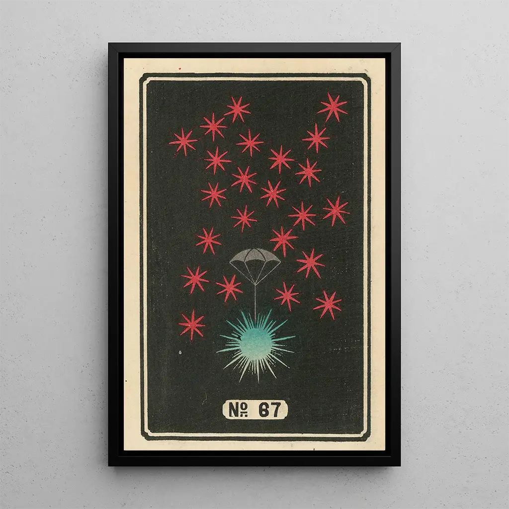 La taidegrafiikka "Feux d'artifice nocturnes n° 67" de Jinta Hirayama nous plonge dans un spectacle éblouissant où les couleurs éclatantes se mêlent à l'obscurité de la nuit. Chaque explosion de lumière semble raconter une histoire, évoquant des souvenirs de célébrations et de moments partagés. Les teintes vives, soigneusement choisies, créent une dynamique captivante qui attire le regard et invite à la rêverie. La technique de l'aquarelle, utilisée avec maestria, confère à cette œuvre une légèreté et une fluidité qui font écho à la nature éphémère des feux d'artifice, transformant chaque instant en une expérience visuelle inoubliable.