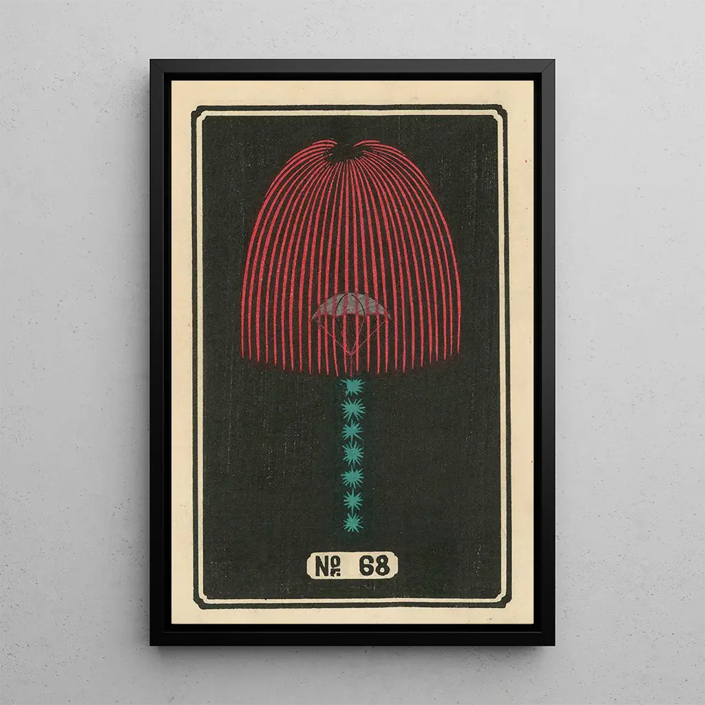 Tässä kiehtovassa teoksessa Jinta Hirayama johdattaa meidät tähdelliseen yöhön, jossa taidegrafiikka valaisevat taivasta. Elävät ja loistavat värit, aina tulenpunaisista syviin sinisiin sävyihin, luovat juhlavan ja iloisen ilmapiirin. Vesiväritekniikka, jota käytetään hienovaraisesti, mahdollistaa keveyden ja sulavuuden tallentamisen valoilmoituksissa. Jokainen sivellinvedos näyttää tanssivan kankaalla, viitaten hetkellisen näytelmän taikuuteen, joka lumouttaa katsojat. Tämä taidegrafiikka yöilotulitteista n° 68 on todellinen kutsu pohdiskeluun ja ihailuun.