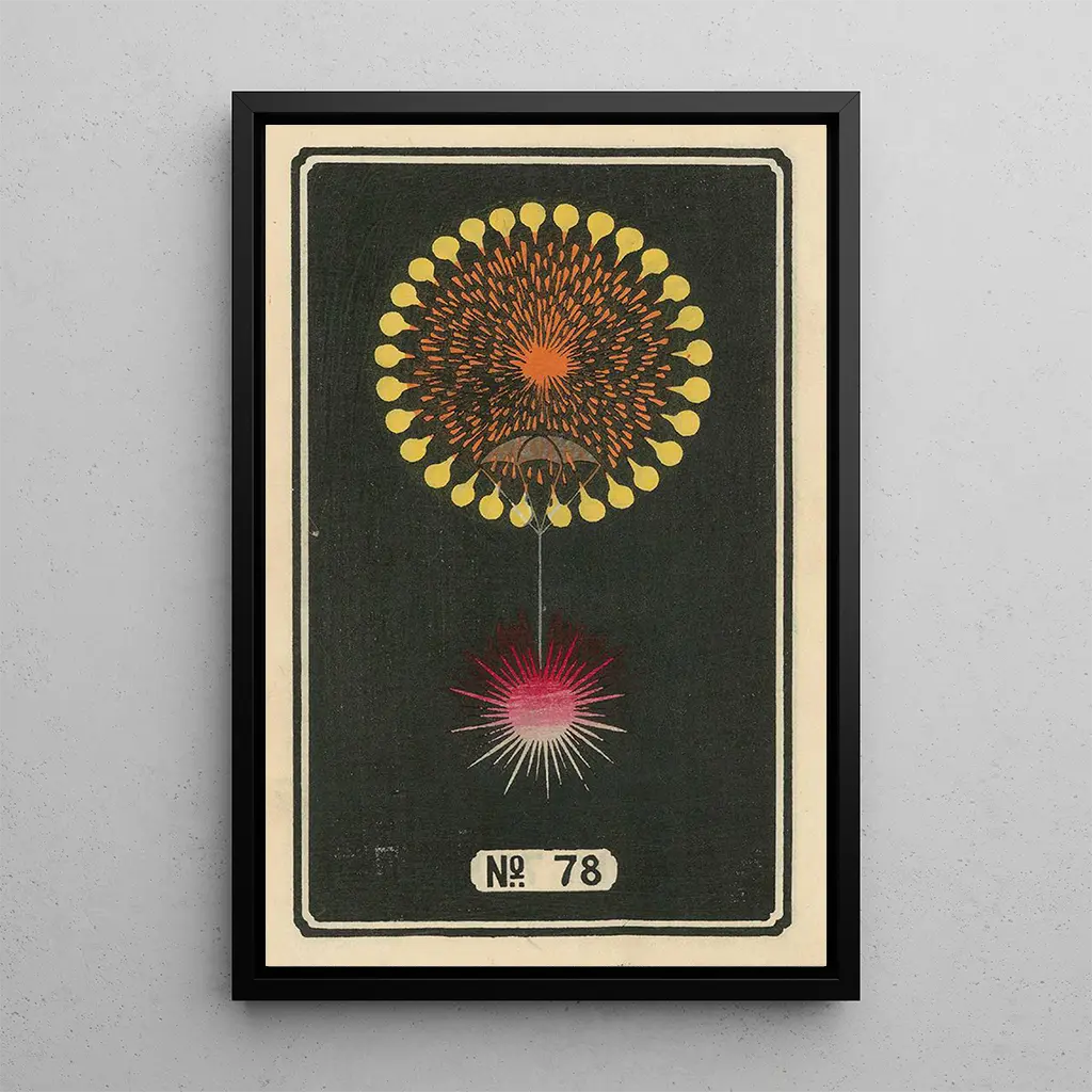 Valitsemalla taidegrafiikan Feux d'artifice nocturnes n° 78, valitset teoksen, joka korostaa asuintilaasi. Olipa kyseessä olohuone, toimisto tai makuuhuone, tämä taulu lisää väriä ja dynamiikkaa. Tulostuslaatu takaa uskollisuuden alkuperäisteoksille, samalla tarjoten esteettisen viehätyksen. Sisällyttämällä tämän kankaan sisustukseesi luot lämpimän ja juhlavan ilmapiirin, samalla kun kunnioitat japanilaista modernia taidetta. Tämä koristevalinta herättää varmasti vieraidesi kiinnostuksen ja ihailun.
