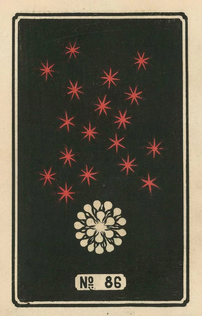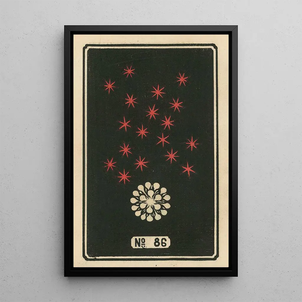 Taidegrafiikka "Feux d'artifice nocturnes n° 86" Jinta Hirayaman teoksesta johdattaa meidät valoilmiöön, jossa värit räiskyvät tummalla taivaalla. Värikkäät sävyt punaisesta, sinisestä ja kullasta lomittuvat luoden juhlavan ja iloisen tunnelman. Taiteilijan tekniikka, joka yhdistää vesiväriä ja mustetta, herättää jokaisen ilotulituksen eloon, tehden niistä lähes kosketeltavia. Tunnetaan kutsu juhlaan, kesäyön pakomatkaan, jossa tähdet sekoittuvat ilotulituksiin ja valaisevat katsojien ihastuneet kasvot.