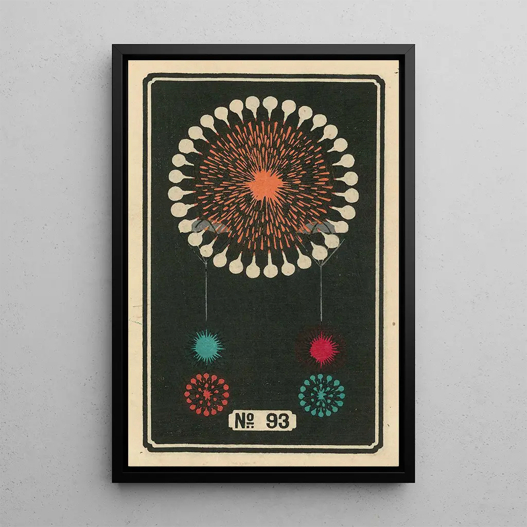 Tämä kiehtova Jinta Hirayaman teos, "Feux d'artifice nocturnes n° 93", vie meidät valon ja värin maailmaan. Taidegrafiikka räjähtää yössä, luoden vaikuttavan kontrastin pimeyden ja kirkkaiden säteiden välille. Taiteilijan käyttämä vesiväritekniikka mahdollistaa tulen sulavuuden ja keveyden välittymisen, kun taas sinisen ja kullan sävyt luovat unenomaisen ja taianomaisen tunnelman. Jokainen yksityiskohta on huolellisesti työstetty, kutsuen katsojan sukeltamaan tähän visuaaliseen juhlaan, joka herättää muistoja kesästä ja juhlinnasta.