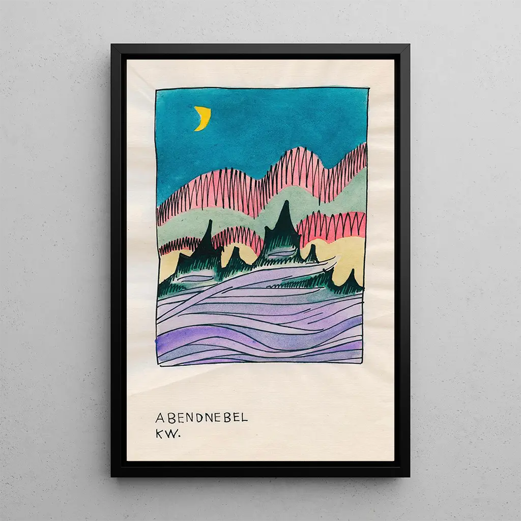 "Brume du soir" -taidegrafiikan Karl Wiener -teoksen tulkinta herättää salaperäisen ja lempeän kohtauksen. Sinisten ja harmaiden sävyjen harmoninen yhdistyminen luo rauhoittavan tunnelman, joka kutsuu unelmointiin. Wiener-tekniikka, joka on tunnusomaista hienovaraisille siveltimenvedoille, herättää kevyen sumun eloon, joka peittää maiseman. Puiden siluetit piirtyvät hienovaraisesti, lisäten teokseen lähes unenomaisen ulottuvuuden. Tämä taidegrafiikka, sen tunnelman ansiosta, kuljettaa katsojan hetkeksi pysähtyneeseen tilaan päivän ja yön välillä, missä luonto paljastaa koko loistonsa.
