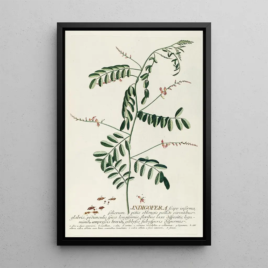 Georg Dionysius Ehretin "Indigotier III" on teos, joka juhlistaa kasvien loistoa huolellisesti ja värikkäästi esitettynä. Tämä taidegrafiikka korostaa kirkkaan indigon sävyjä, symboloiden tämän arvostetun kasvin rikkautta. Sävellys on huolellisesti suunniteltu, jokainen lehti ja kukka on esitetty tarkkuudella, joka todistaa Ehretin taiteellisen lahjakkuuden. Tämä teoksen välittämä tunnelma on sekä rauhallinen että kiehtova, kutsuen katsojan sukeltamaan kiehtovaan kasvitieteen maailmaan.
