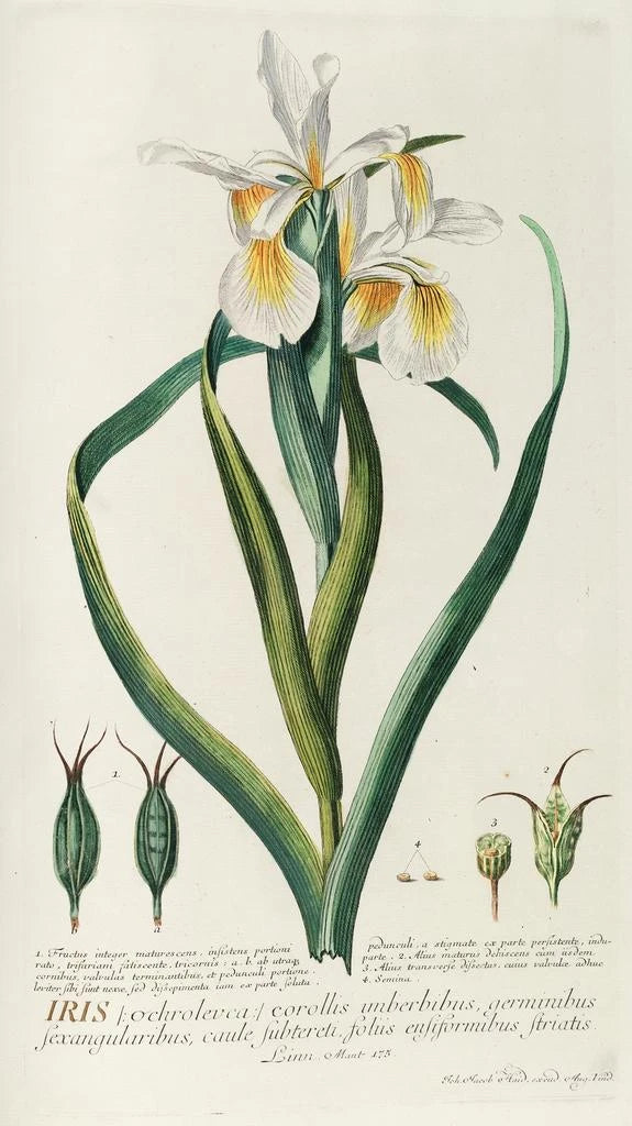 Georg Dionysius Ehret, 1700-luvun kasvi-illustrattori, on jättänyt jälkensä aikakauteensa tarkkojen ja taiteellisten kasvikuvitustensa ansiosta. Hänen työnsä sijoittuu aikaan, jolloin kasvitiede koki merkittävän nousun, ja taiteilijat sekä tutkijat pyrkivät dokumentoimaan lajien monimuotoisuutta. Linnéltä vaikutteita saanut Ehret yhdisti tieteellisen tarkkuuden ja esteettisen herkkyyden, tehden hänestä edelläkävijän kasvi-illustroinnin alalla. "Iris" on täydellinen esimerkki hänen taidostaan, yhdistäen visuaalisen kauneuden ja kasvitieteellisen tarkkuuden.
