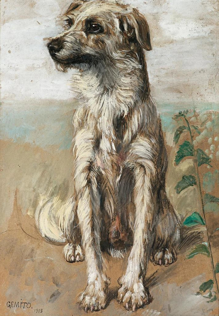 Vincenzo Gemito, syntynyt vuonna 1852 Napolissa, on taiteilija, jonka työ on vahvasti vaikuttanut neoklassismin ja realismin liikkeisiin. Hänen uransa alkoi veistoksesta, jossa hän saavutti mainetta muotokuvistaan ja mytologisista teoksistaan. Gemito onnistui vangitsemaan aiheidensa olemuksen poikkeuksellisella tarkkuudella, mikä toi hänelle tärkeän paikan italialaisen taiteen historiassa. "Chien assis", joka on tehty 1800-luvun lopulla, todistaa hänen kyvystään esittää eläinelämää ainutlaatuisella herkkyydellä, samalla kun hän sijoittui aikaan, jolloin luonto ja arki olivat yhä enemmän taiteilijoiden juhlimia.