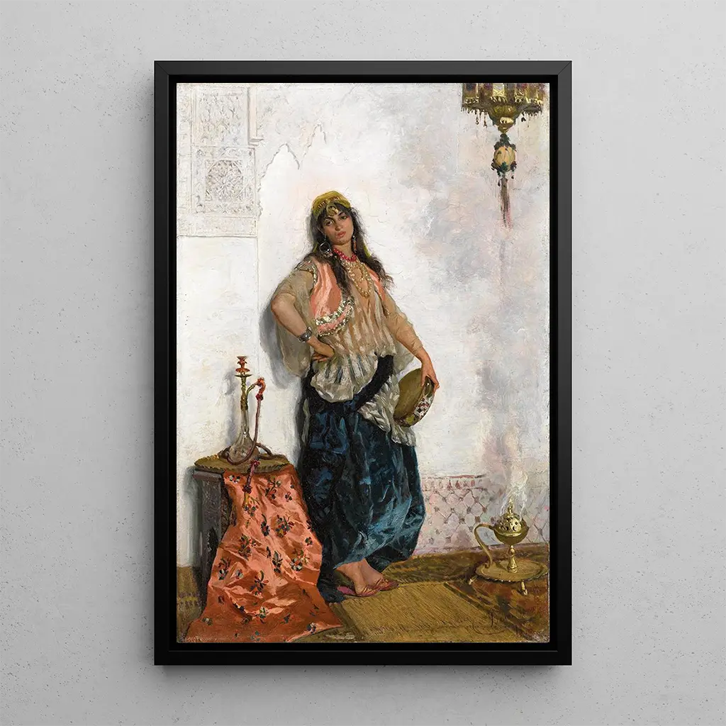 Cesare Biseo:n orientaalinen tanssija-taidegrafiikka on koristeellinen teos, joka rikastuttaa mitä tahansa tilaa, olipa kyseessä olohuone, toimisto tai makuuhuone. Sen tulostuslaatu ja uskollisuus alkuperäisväreille takaavat vaikuttavan visuaalisen vaikutelman. Sisällyttämällä tämän taulun sisustukseesi lisäät eksoottisuutta ja hienostuneisuutta kotiisi. Tämän teoksen esteettinen vetovoima, yhdistettynä sen rikkaaseen historiaan, tekee siitä ihanteellisen valinnan niille, jotka haluavat lisätä taiteellista ulottuvuutta ympäristöönsä. Tämä kangas on enemmän kuin pelkkä koriste; se on kutsu unelmointiin ja pakomatkaan.