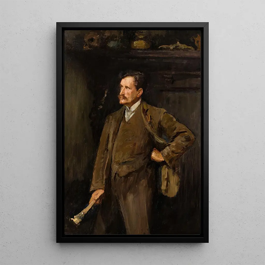 Dans cet autoportrait, Jan Cybis se dévoile avec une intensité poignante. Les couleurs riches et les nuances délicates de sa palette créent une atmosphère à la fois introspective et vibrante. La lumière joue un rôle essentiel, illuminant son visage tout en laissant des ombres mystérieuses envelopper le reste de la toile. La technique de l'artiste, qui mêle habilement le réalisme à une touche d'expressionnisme, invite le spectateur à plonger dans son univers intérieur. Chaque coup de pinceau semble chargé d'émotion, révélant non seulement son apparence, mais aussi une part de son essence.
