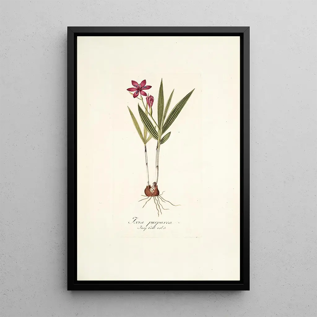 "Ixia purpurea" -taidegrafiikan reproduktio on erinomainen valinta sisätilojen koristeluun. Olipa kyseessä olohuone, toimisto tai makuuhuone, tämä taidegrafiikka tuo väriä ja eloa tilaan. Tulostuksen laatu takaa yksityiskohtien ja alkuperäisen teoksen värien uskollisuuden, tarjoten esteettistä viehätystä. Sisällyttämällä tämän teoksen sisustukseesi luot lämpimän ja kutsuvan ilmapiirin, samalla juhlistaen luonnon kauneutta ja Jacquinin taiteellista perintöä.