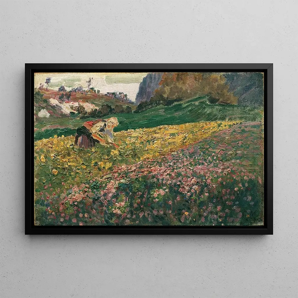 Jeune fille dans le pré fleuri, tableau de Carl Moll, capture l’essence de la beauté naturelle et de l’innocence juvénile. La composition, baignée de lumière, présente une jeune femme entourée de fleurs éclatantes, créant un tableau vivant et joyeux. Les couleurs vives et les touches délicates de peinture à l'huile évoquent une atmosphère de sérénité et de bonheur. Moll, avec son style impressionniste, parvient à transmettre une sensation de fraîcheur et de légèreté, invitant le spectateur à s’émerveiller devant la splendeur de la nature.
