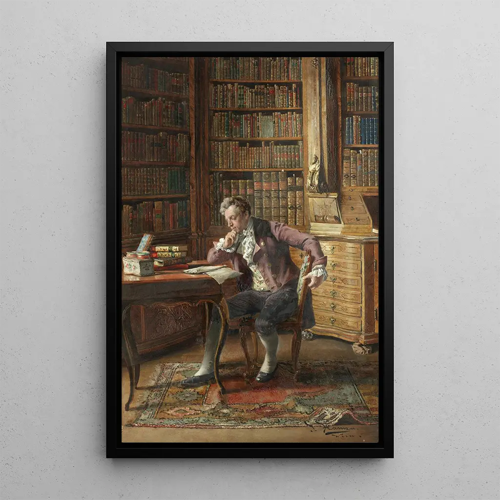 "Kirjasto" taidegrafiikan reproduktio on oivallinen koristevalinta mihin tahansa huoneeseesi. Olipa kyseessä toimisto, kirjasto tai olohuone, tämä taulu lisää eleganssia ja kulttuuria sisätiloihisi. Tulostuksen laatu takaa uskollisuuden alkuperäisteoksen yksityiskohdille, ja sen esteettinen vetovoima tekee siitä kiehtovan keskustelunaiheen. Sisällyttämällä tämän teoksen sisustukseesi luot inspiroivan ympäristön, joka arvostaa tiedon ja taiteen rakkautta.