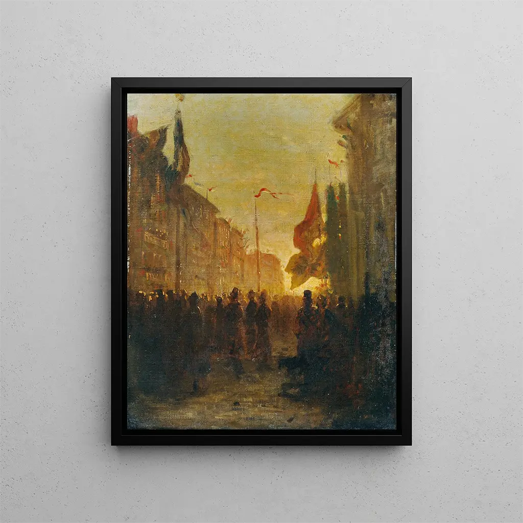Alois Schönnin tyyliä leimaa rohkea ja innovatiivinen lähestymistapa, joka haastaa taiteelliset konventiot. "Lippujaisten juhlaliput" erottuu kirkkaiden värien ja rohkeiden sommitelmien käytöllä, luoden juhlan ja keveyden ilmapiirin. Liput, kokoontumisen ja juhlinnan symbolit, kelluvat arvokkaasti, herättäen liikkeen ja elämän tunteen. Tavan, jolla Schönn leikkii valon ja varjon kanssa, antaa teokselle uuden syvyyden, kun taas lipun tyylitellyt muodot näyttävät melkein tanssivan kankaalla. Tämä dynaamisuuden ja rauhallisuuden yhdistelmä tekee tästä teoksesta todellisen mestariteoksen, joka vetää katseita ja vangitsee mielen.