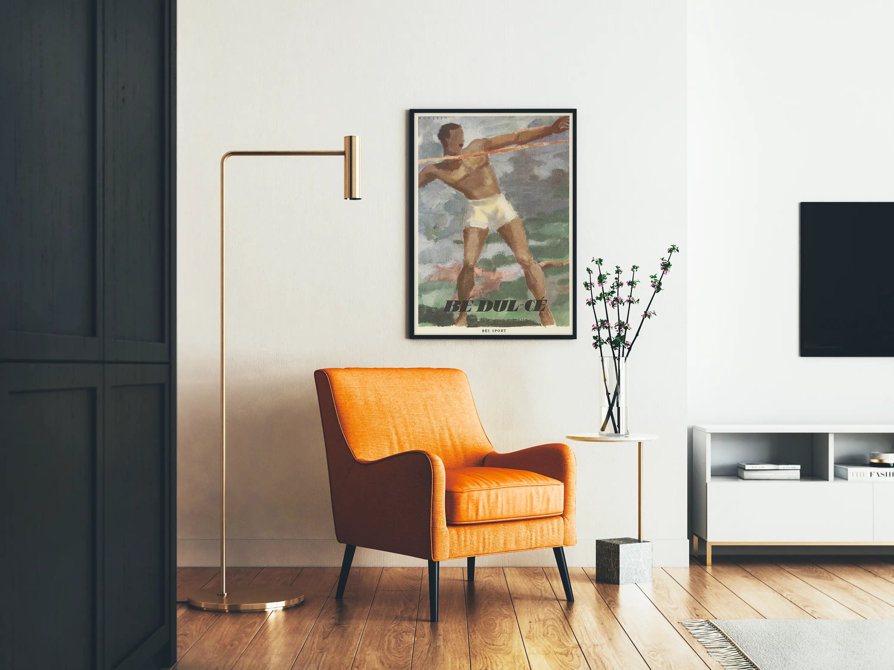 Tämä seinäkoriste on ihanteellinen urheilun ja retro-suunnittelun ystäville, jotka haluavat luoda tilaan elinvoiman ja eleganssin tunnelmaa. Tämä juliste kuvastaa urheilun henkeä, joka korostaa hallittua voimaa ja keskittymistä, tasapainoisen koostumuksensa ansiosta, joka luonnollisesti vetää katseen puoleensa.