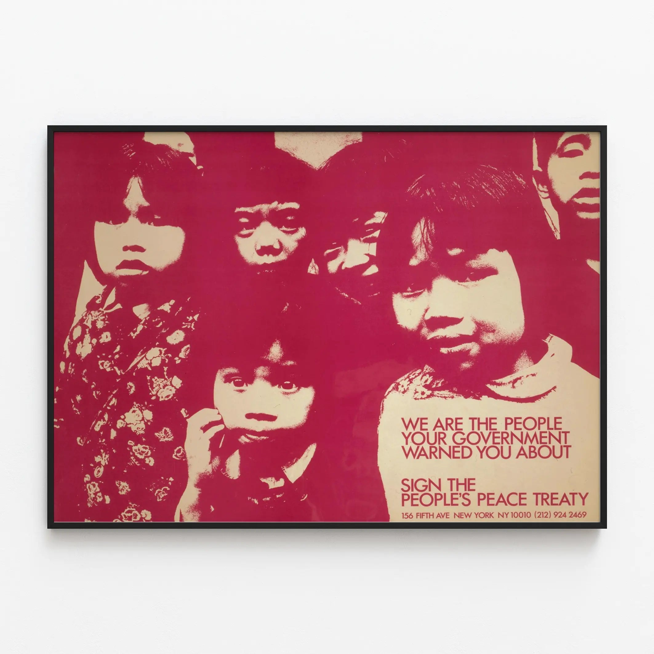 Tämä vaikuttava seinäjuliste esittelee lasten muotokuvia punaisen ja kermaisen sävyjen sävyttämänä, luoden voimakkaan ja vaikuttavan kontrastin. Erityinen teksti "Me olemme ne ihmiset, joista hallituksesi varoitti sinua" ja "Allekirjoita kansan rauhansopimus" punaisilla kirjaimilla vahvistaa vahvan viestin vastarinnasta ja kansalaisaktiivisuudesta, antaen tälle seinäkoristeelle poliittisen ja yhteiskunnallisen ulottuvuuden. Tämä juliste sopii täydellisesti nykyaikaiseen sisustukseen tai mietiskelytilaan, tuoden taiteellista ja sitoutunutta tunnelmaa. Tämä seinäkoriste on suunnattu kaikille, jotka haluavat visuaalisesti ilmaista tukensa rauhalle ja sosiaaliselle oikeudenmukaisuudelle. Sen julistemuoto mahdollistaa helpon asennuksen erilaisille seinämateriaaleille toimistossa, olohuoneessa tai yhteisötilassa. Väriyhdistelmät ja graafinen koostumus luovat vaikuttavan ja dynaamisen visuaalisen vaikutelman, korostaen yhtenäisyyden ja kansalaisvalppaan viestiä. Tämä koriste-esine on vahva läsnäololtaan, täydellinen persoonallisen ilmeen luomiseen asuin- tai työtiloihisi. Valitsemalla tämän julisteen sijoitat ainutlaatuisen sisustuselementin, joka herättää ajatuksia ja koristaa seinääsi tyylikkäästi ja aitoudella.