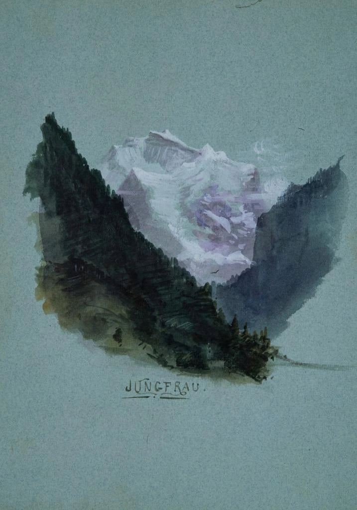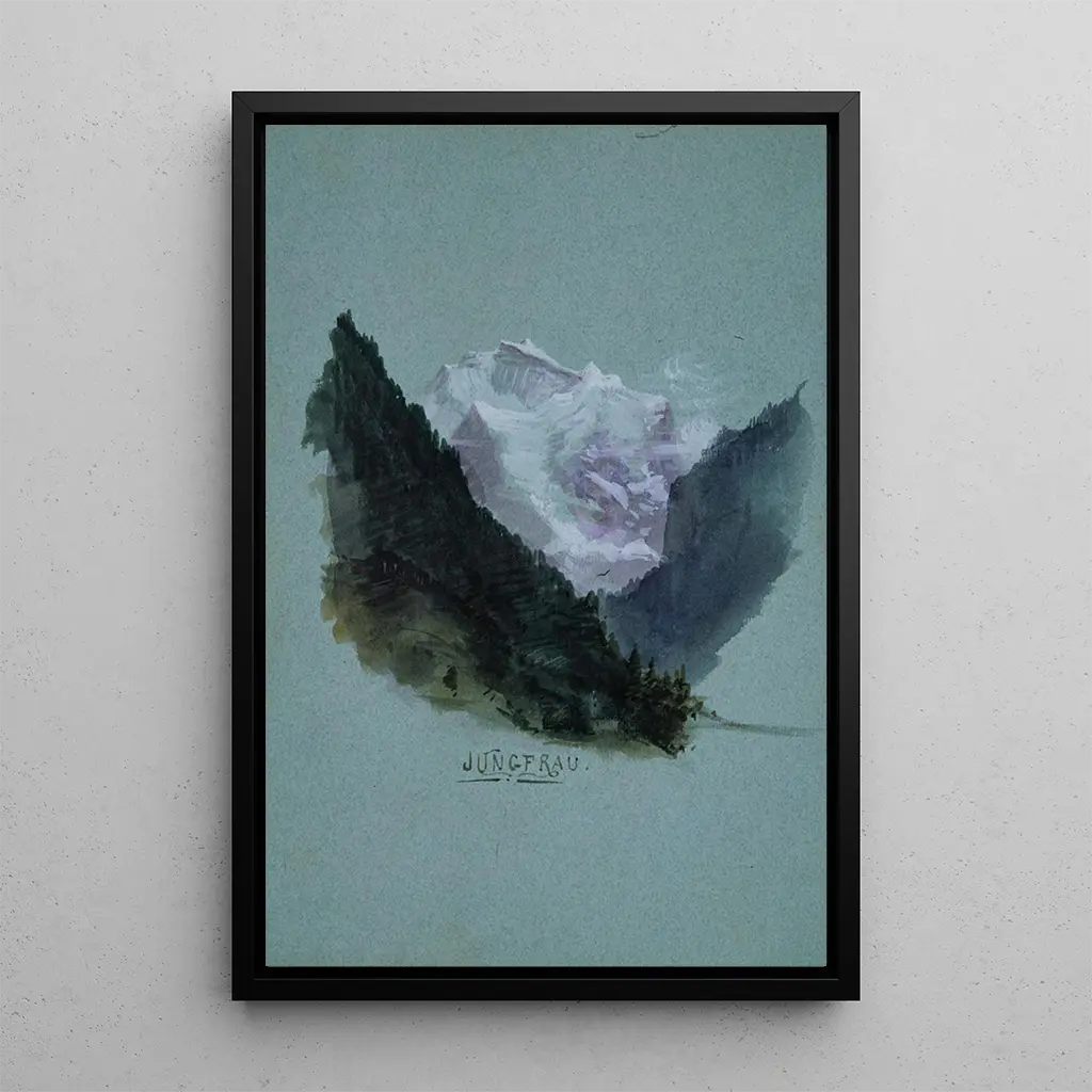 Jungfrau-taidegrafiikka kuljettaa meidät Sveitsin Alppien sydämeen, jossa nimikkovuori kohoaa vaikuttavalla suuruudella. John Singer Sargent, muotokuvien ja valon mestari, käyttää pehmeiden värien palettia, jossa yhdistyvät sinisen ja valkoisen sävyt, vangiten lumen puhtauden ja taivaan syvyyden. Vesiväritekniikka, kevyt ja virtaava, antaa teokselle lähes eteerisen tunnelman, kutsuen katsojan uppoutumaan tähän majesteettiseen maisemaan. Kompositio, tasapainoinen ja harmoninen, herättää rauhan tunteen, ikään kuin aika olisi pysähtynyt tämän luonnonkauneuden edessä.