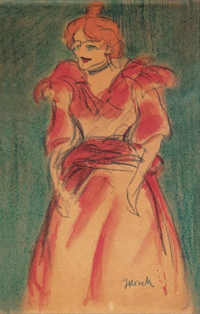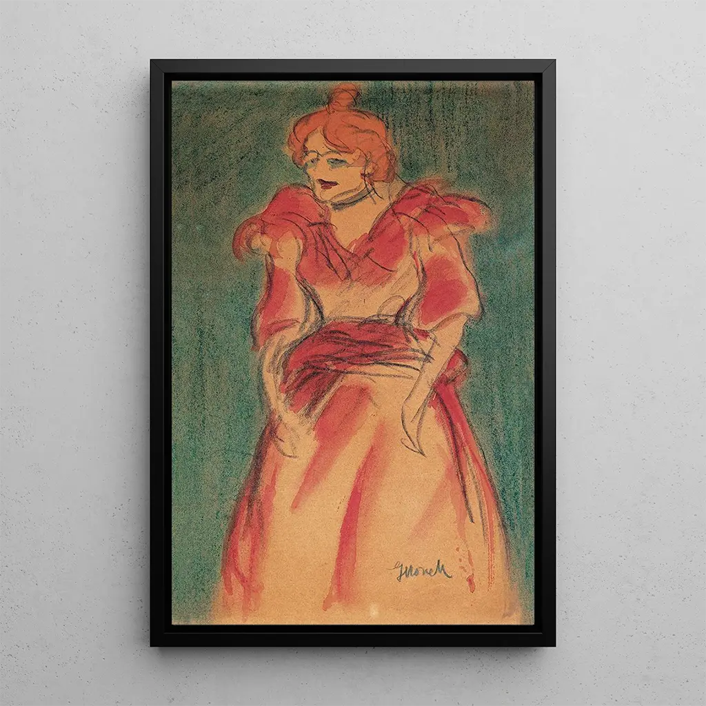 La taidegrafiikka de la cabarettitähti d'Isidre Nonell vangitsee elämän yössä elävän olemuksen ripauksella melankoliaa. Tämä taidegrafiikka, rikas lämpimistä väreistä ja kontrasteista, korostaa kiehtovaa naista, joka on uppoutunut taiteeseensa. Punaisen ja mustan sävyt luovat sekä intiimin että juhlavan tunnelman, viitaten aikakauden vilkkaisiin kabareihin. Nonellin tekniikka, joka yhdistää impressionismin ja ekspressionismin, mahdollistaa kohtauksen energian kokemisen samalla korostaen laulajan, todellisen yön muusan, tunteiden syvyyttä.