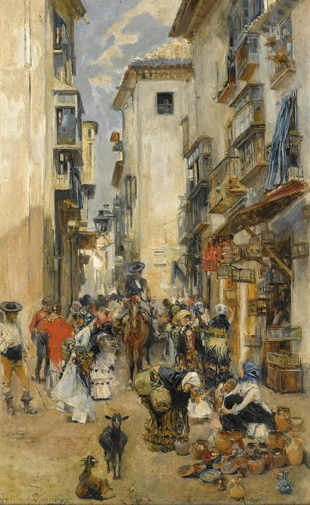 Dans la rue : vie urbain - taidegrafiikka Dans la taidegrafiikka "Dans la rue", José García Ramos vangitsee kaupunkielämän olemuksen kirkkaiden väripalettien ja dynaamisen sommittelun avulla. Hahmot, eloisat ja ilmeikkäät, liikkuvat yksityiskohtaisessa ympäristössä, jossa jokainen elementti kertoo tarinan. Taiteilijan tekniikka, joka yhdistää impressionismin ja realismin, luo elävän ja immersiivisen tunnelman, kutsuen katsojan sukeltamaan tähän päivittäiseen kohtaukseen. Valon ja varjon leikit lisäävät vaikuttavaa syvyyttä, tehden tästä taideteoksesta kiehtovan ja elävän. José García Ramos : espanjalaisen realismin mestari José García Ramos, syntynyt vuonna 1852 Sevillassa, on ikoninen espanjalaisen realismin taiteilija. Hän sai vaikutteita aikansa suurilta mestareilta ja kehitti ainutlaatuisen tyylin, joka yhdistää tarkkuuden ja ilmaisullisuuden. Toimintansa lopulla 1800-luvun lopulla ja 1900-luvun alussa hän osallistui lukuisille näyttelyille, edistäen espanjalaisen taiteen tunnustusta kansainvälisesti. Hänen teoksensa, usein keskittyen päivittäiseen elämään ja kansankohtauksiin, osoittavat syvää ymmärrystä ihmisestä ja sitoutumista todellisuuden uskolliseen esittämiseen. Monipuolinen sisustustarjonta Taidegrafiikka "Dans la rue" on koristeellinen kappale, joka sopii täydellisesti erilaisiin tiloihin, kuten olohuoneeseen, toimistoon tai jopa makuuhuoneeseen. Sen tulostuslaatu ja uskollisuus alkuperäiselle teokselle takaavat esteettisen viehätyksen. Valitsemalla tämän taideteoksen lisäät sisustukseesi eleganssia ja dynaamisuutta, samalla herättäen keskustelua taiteesta ja kulttuurista. Sen elävä ja värikäs tunnelma tekee tästä taideteoksesta keskeisen osan sisustustasi, vangiten kaikkien vieraidesi huomion.