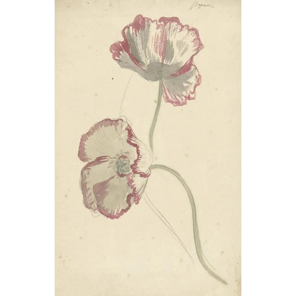 "Two studies of a poppy" taidegrafiikka on tyylikäs koristevalinta mihin tahansa asuintilaan. Olipa kyseessä olohuone, toimisto tai makuuhuone, tämä taidegrafiikka lisää hienostuneisuutta ja rauhallisuutta. Tulostuslaatu takaa värejen ja yksityiskohtien uskollisuuden alkuperäiselle teokselle, tehden tästä kappaleesta arvokkaan lisän kokoelmaasi. Valitsemalla tämän taidegrafiikan, annat sisustuksellesi kutsun pohdiskeluun ja luonnon kauneuden arvostamiseen, samalla kun kunnioitat lahjakasta taiteilijaa.
