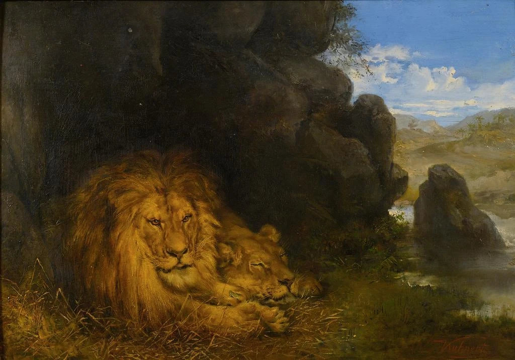 Taidetuloste | Kaksi leijonaa luolassa - Wilhelm Kuhnert