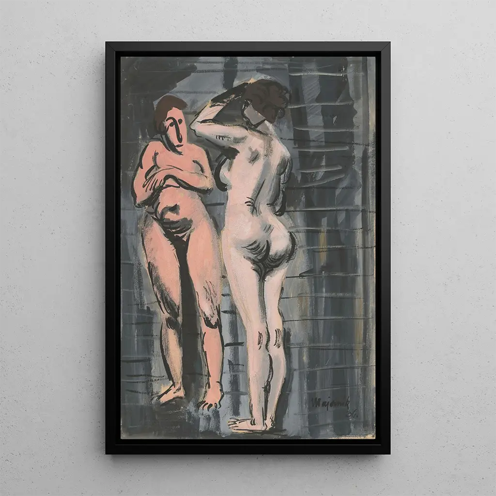 Dans l'œuvre "Deux nus féminins", Cyprian Majernik nous plonge dans une atmosphère intimiste où la beauté des corps féminins est mise en avant avec délicatesse. Les courbes des figures, rendues avec une maîtrise des ombres et des lumières, évoquent une sensualité douce et apaisante. Les couleurs chaudes, mêlant des tons de chair et des nuances terreuses, créent une harmonie visuelle qui invite à la contemplation. La technique de l'artiste, qui combine réalisme et touches impressionnistes, donne vie à cette scène, la rendant presque palpable. Chaque détail, du mouvement des drapés aux expressions des visages, contribue à l'émotion qui se dégage de cette toile.