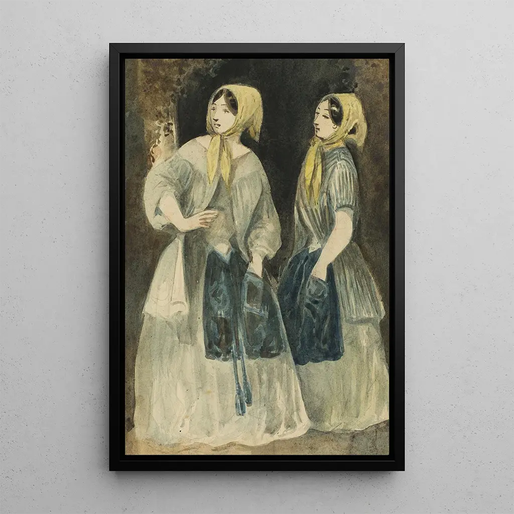 Taidetuloste | Kaksi naista keltaisten huivien kanssa - Constantin Guys