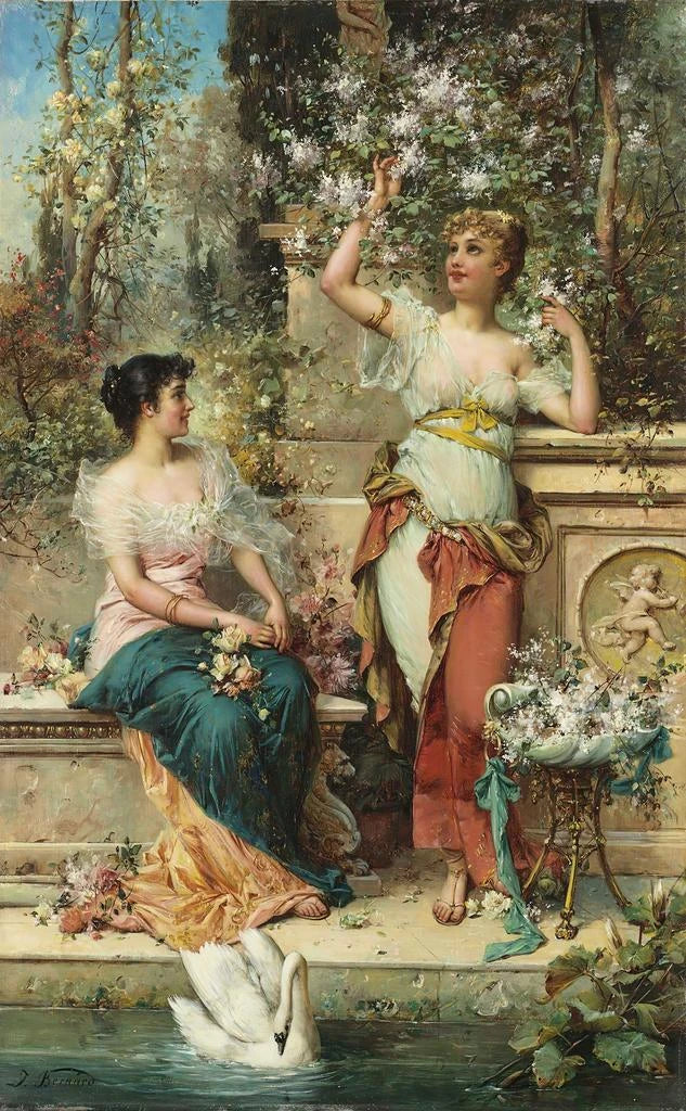 Hans Zatzka, actif à la fin du XIXe siècle et au début du XXe siècle, est un artiste autrichien reconnu pour ses œuvres empreintes de romantisme et de sensualité. Influencé par le mouvement symboliste, il a su capturer des moments de vie quotidienne avec une touche de magie. Ses tableaux, souvent peuplés de figures féminines, reflètent une esthétique délicate et raffinée, typique de son époque. Zatzka a su s'imposer dans le monde de l'art grâce à sa capacité à créer des atmosphères poétiques, faisant de lui une figure incontournable de l'art viennois.