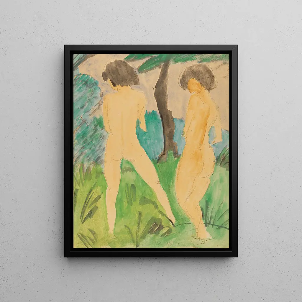 Kaksi naispuolista alastonta maisemassa - Otto Mueller