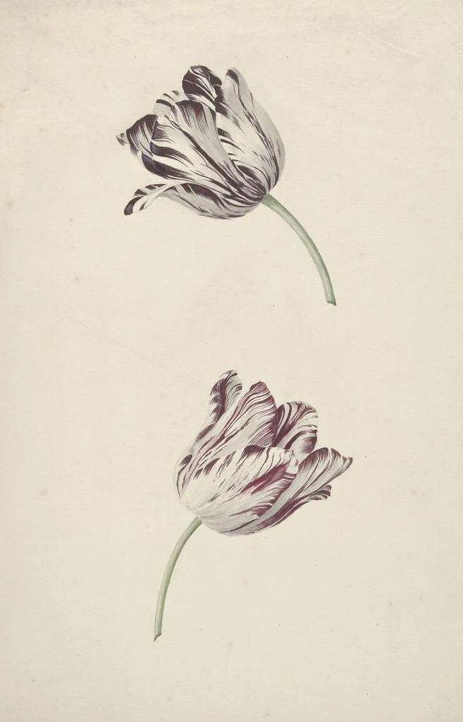 Kaksi valkoista ja punaista tulppaania - Jan Jansz van der Vinne Taidetuloste