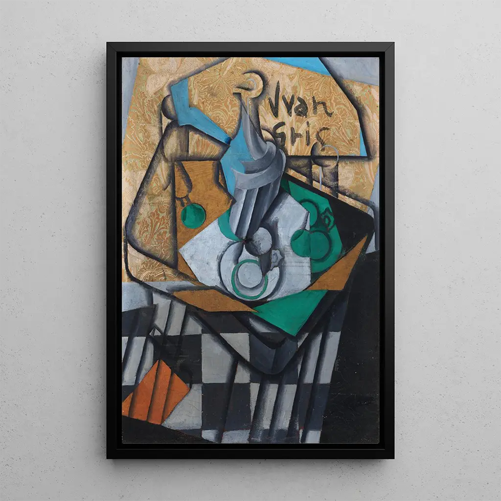 Juan Gris, syntynyt vuonna 1887, tunnetaan yhtenä kubismin mestareista, jotka tuovat tähän taidesuuntaan ainutlaatuisen sävyn. Hänen lähestymistapansa, jota usein kuvataan kubismin synteettiseksi, erottuu kirkkaiden värien ja geometristen muotojen käytöllä. Vaikutteita suurilta mestareiltaan saanut Gris on osannut yhdistää espanjalaisen perintönsä elementtejä ja innovoida tekniikassaan. Hänen uransa, vaikka traagisesti lyhyt sairauden vuoksi, on jättänyt pysyvän jäljen moderniin taiteeseen. "Carafe, tasses ja lasit" kuvaa täydellisesti hänen kykyään muuttaa tavalliset esineet taideteoksiksi.