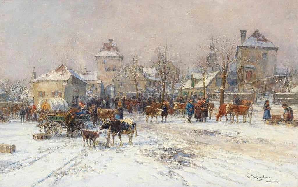 Eläinmarkkinat talvella - Karl Stuhlmüller