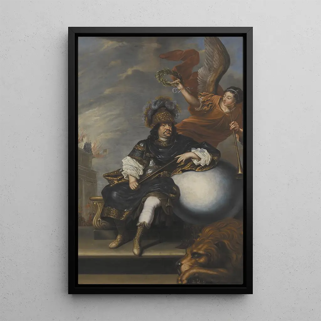 Karl X Gustav 1622-1660 : kuninkaallinen muotokuva, joka huokuu majesteettisuutta David Klöcker Ehrenstrahlin maalaama "Karl X Gustav" -taidegrafiikka esittää Ruotsin kuninkaan koko loistossaan. Rikkaat ja syvät värit, jotka yhdistävät kultaisia sävyjä ja sinisen vivahteita, luovat sekä juhlavan että dynaamisen tunnelman. Taiteilijan tekniikka, joka on tunnusomaista tarkkojen siveltimenvetojen ja huolellisen yksityiskohtien huomioimisen ansiosta, herättää kuninkaan muotokuvan eloon. Karl X Gustavin ylpeä ja päättäväinen katse sekä hänen kuninkaallinen vetovoimansa kertovat hänen vallastaan ja auktoriteetistaan, kutsuen katsojan ihailemaan Ruotsin monarkian suuruutta. David Klöcker Ehrenstrahl : kuninkaiden muotokuvamaalari David Klöcker Ehrenstrahl, joka toimi 1600-luvulla, tunnetaan yhtenä aikansa merkittävimmistä muotokuvamaalareista. Hän syntyi Ruotsissa ja hänen tyylinsä heijastavat barokin ja klassismin vaikutteita, mikä näkyy hänen teoksissaan. Ehrenstrahl sai kunnian maalata useita kuninkaallisia jäseniä, ja hänen työnsä on osaltaan muokannut Ruotsin monarkian kuvaa. Hänen taiteellinen lähestymistapansa, joka yhdistää realismia ja idealisointia, merkitsi aikaa, jolloin muotokuva ei ainoastaan tallentanut historiallisia hahmoja, vaan myös vahvisti heidän valtaansa ja legitiimiyttään. Monipuolinen koristeellinen taidegrafiikka "Karl X Gustav" -taidegrafiikan reproduktio on koristeellinen kappale, joka rikastuttaa sisustustasi, olipa kyseessä olohuone, toimisto tai makuuhuone. Sen tulostuslaatu ja uskollisuus alkuperäisväreille tekevät siitä ihanteellisen valinnan taiteen ja historian harrastajille. Sisällyttämällä tämän taidegrafiikan osaksi sisustustasi, tuot esiin hienostuneisuuden ja eleganssin vivahteita, samalla juhlistaen ruotsalaista kulttuuriperintöä. Tämän kankaan esteettinen vetovoima tekee siitä erinomaisen keskipisteen, joka herättää uteliaisuutta ja ihailua vieraissasi.