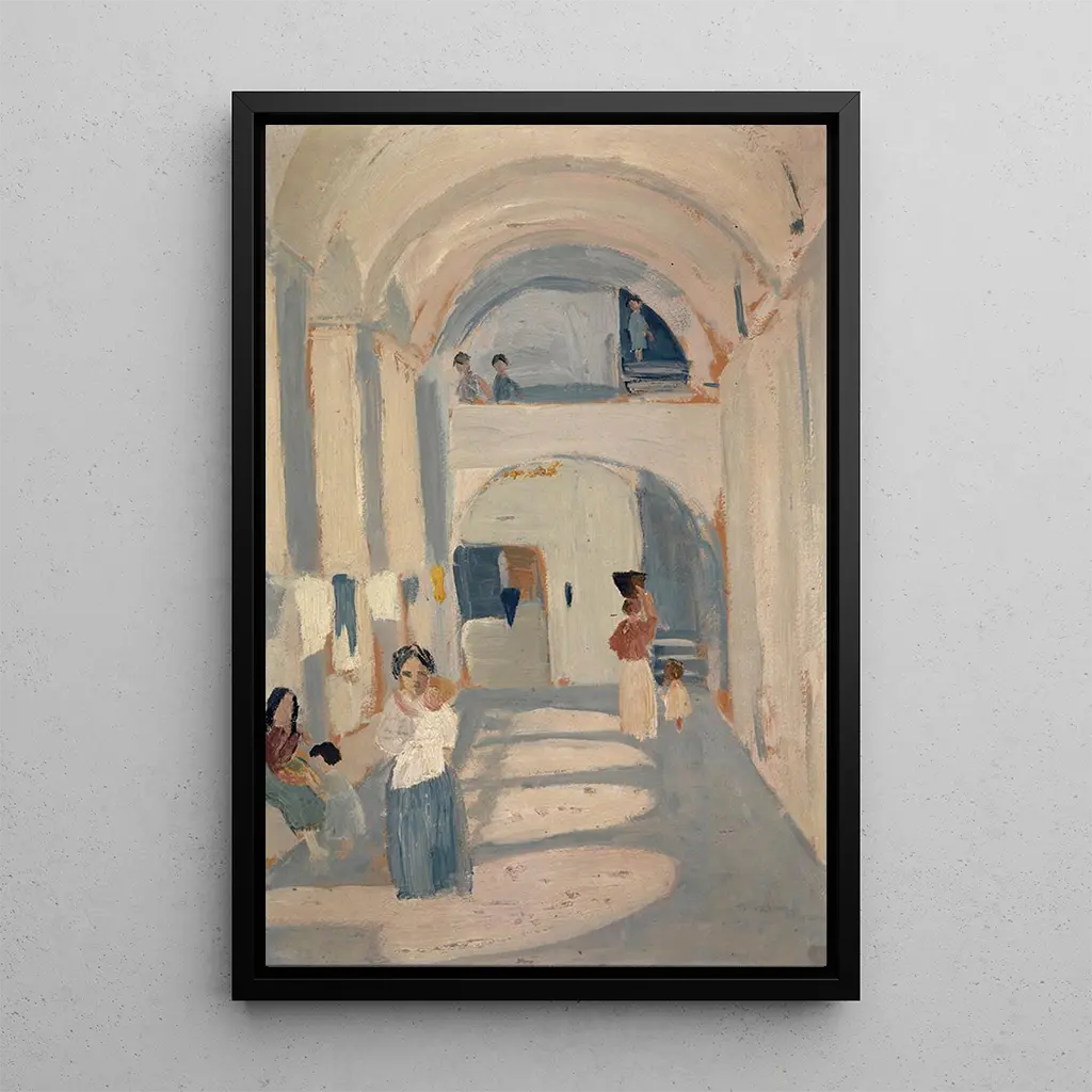 Ernst Schiessin taidegrafiikka Kasbah between 1916 and 1918 kuljettaa meidät maailmaan, joka on täynnä historiaa ja kulttuuria. Tämä taidegrafiikka kuvaa kiehtovaa arkkitehtuuria, jossa rakennusten geometriset muodot sekoittuvat ympäröivien maisemien maanläheisiin sävyihin. Schiessin tekniikka, joka yhdistää tarkkuuden ja impressionismin, luo elävän, lähes kosketeltavan ilmapiirin, jossa jokainen yksityiskohta kertoo tarinan. Lämmintä väriä ja hienovaraisia varjoja sisältävät sävyt kutsuvat tutkimaan tämän kasbahin kujia, paljastaen rikkaan kulttuuriperinnön.
