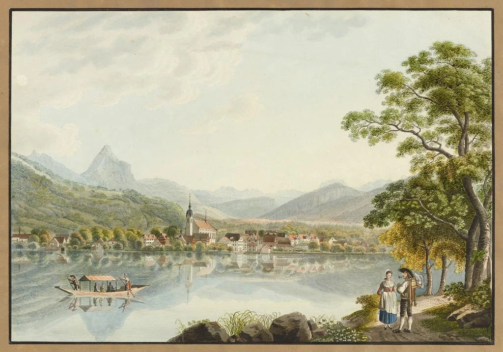 Vue de la ville d'Arth : un panorama enchanteur sur les rives du lac