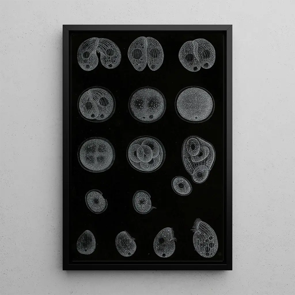 "Développement d'un Infusoire" d'Alfred Frödl vievoittaa meidät mikroskooppiseen maailmaan, paljastaen yksisoluisen organismin piilotetun kauneuden. Kirkkaiden värien ja virtaviivaisten muotojen kanssa tämä teos herättää eloon liikkuvan dynamiikan, lähes tanssivan, jossa jokainen infusoire näyttää heräävän eloon silmiemme edessä. Frödlin tekniikka, yhdistäen tieteellisen tarkkuuden ja taiteellisen herkkyyden, luo kiehtovan ilmapiirin, kutsuen katsojan tutkimaan biologian salaisuuksia. Teos on juhla monimuotoisuudesta ja elämän monimutkaisuudesta, tuoden esiin usein näkymättömiä olentoja silmämääräisesti.