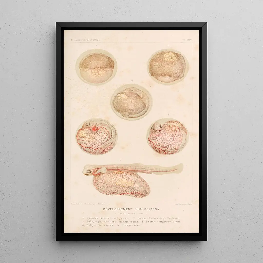 Taidegrafiikka "Kalankehitys" on koristeellinen kappale, joka lisää eleganssia mihin tahansa tilaan, olipa kyseessä olohuone, toimisto tai makuuhuone. Sen tulostuslaatu ja alkuperäisten yksityiskohtien uskollisuus tekevät siitä ihanteellisen valinnan taiteen ja meren biologian harrastajille. Tämän taidegrafiikan esteettinen viehätys piilee sen kyvyssä herättää meren syvänteiden rauha, muuttaen sisätilasi rauhan tyyssijaksi. Lisäämällä tämän taidegrafiikan sisustukseesi rikastutat tilaa teoksella, joka edistää pohdintaa ja ihmetystä.
