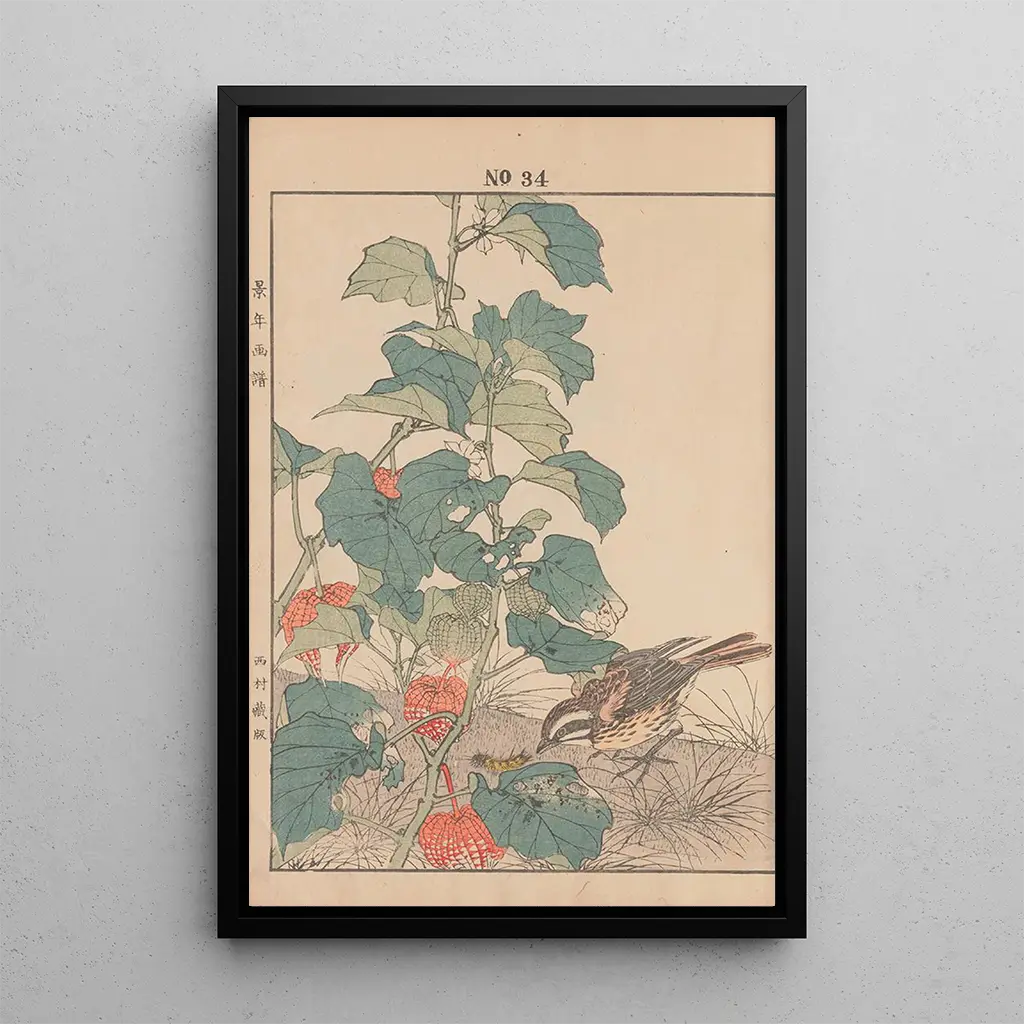Keinen kach gafu Pl037 -taidegrafiikka avaa meille herkän maailman, jossa luonto paljastuu poikkeuksellisella hienostuneisuudella. Pastellivärit, pehmeistä vihreistä hienovarisiin roosiin, luovat rauhoittavan, lähes meditatiivisen tunnelman. Ukiyo-e-tyylinen taidegrafiikka, joka on tyypillinen japanilaiselle taiteelle, mahdollistaa kukkien ja lehtien keveyden vangitsemisen, kun taas yksityiskohtainen työ paljastaa taiteilijan poikkeuksellisen ammattitaidon. Jokainen elementti on huolellisesti aseteltu, kutsuen katsojan pysähtymään tämän harmonisen kohtauksen äärelle.