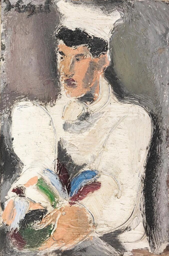 Helmut Kolle, saksalainen 1900-luvun alun taiteilija, liitetään usein ekspressionismin liikkeeseen. Hän syntyi vuonna 1884 ja sai vaikutteita aikansa taidesuuntauksista, kuten fauvismista ja kubismista. Kolle kehitti ainutlaatuisen tyylin, joka yhdistää näiden suuntausten elementtejä säilyttäen samalla figuurimaisuuden lähestymistavan. Hänen teoksensa heijastavat arkielämän ja genretapahtumien herkkyyttä, kuten "Kokki ja kukko" osoittaa. Maalaustensa kautta hän pyrkii vangitsemaan yksinkertaisten hetkien olemuksen ja samalla täyttämään ne emotionaalisella intensiteetillä, joka on hänen omaa.
