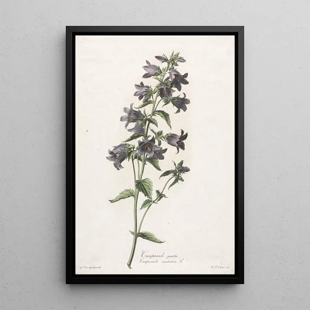 Gerard van Spaendonckin taidegrafiikka Campanule gantelée herättää hienostuneen kauneuden ja hienovaraisen harmonian. Sinisen ja violetin sävyt sekoittuvat sulavasti, kun taas terävimmät yksityiskohdat terälehdissä ja lehdissä vangitsevat tämän kukkaisen luonnon ytimen. Taiteilijan hallitsema öljyvärimaalauksen tekniikka antaa syvyyttä ja kirkkautta, jotka tekevät tästä teoksesta elävän. Tämä rauhallinen tunnelma, joka huokuu tästä kankaasta, kutsuu mietiskelyyn ja kuljettaa katsojan salaperäiseen puutarhaan, jossa luonto kukoistaa kaikessa loistossaan.