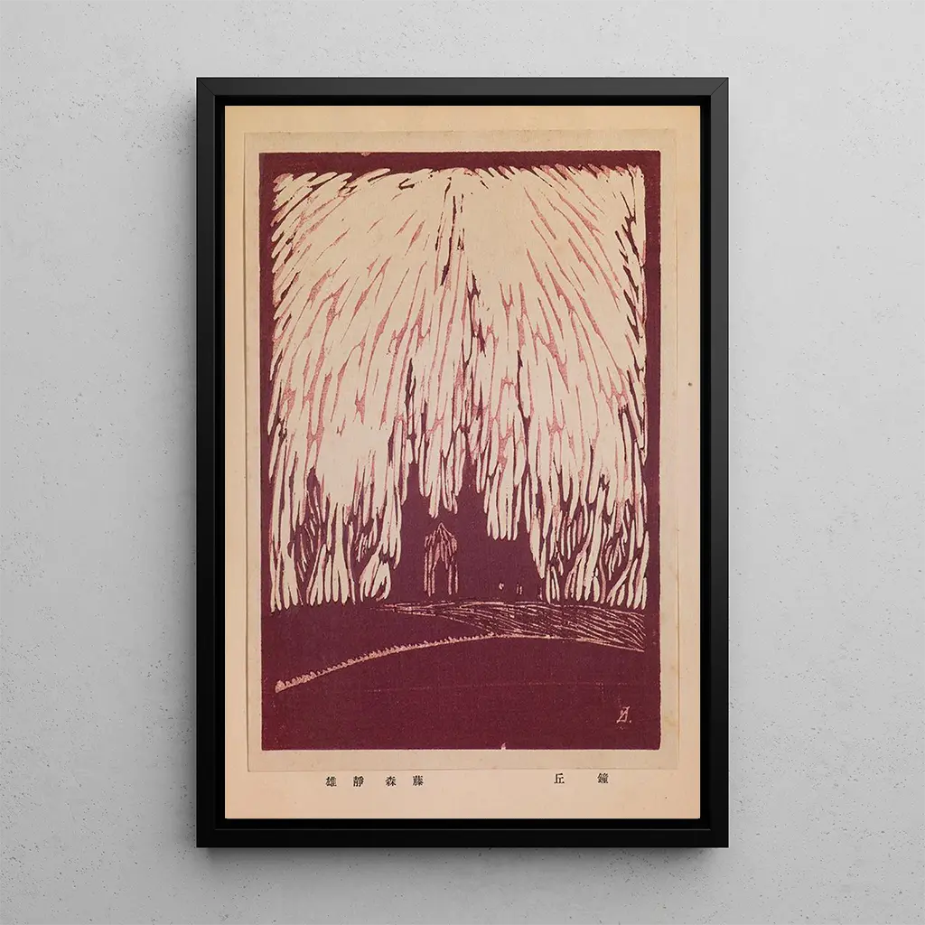 Fujimori Shizuo'n taidegrafiikka "Colline de la cloche" kuvaa rauhallista kohtausta, jossa luonto levittäytyy loistossaan. Vihreän ja sinisen sävyt sekoittuvat harmonisesti, luoden rauhoittavan ja mietiskelevän tunnelman. Kompositio, joka keskittyy majesteettiseen kukkulaan, kutsuu unelmoimaan ja pakoon arjen kiireitä. Puiden ja kukkien hienovaraiset yksityiskohdat kertovat huolellisesta tekniikasta, joka on tyypillistä japanilaiselle taiteelle ja korostaa luonnon kauneutta. Tämä teos vie katsojan maailmaan, jossa rauha ja harmonia hallitsevat.