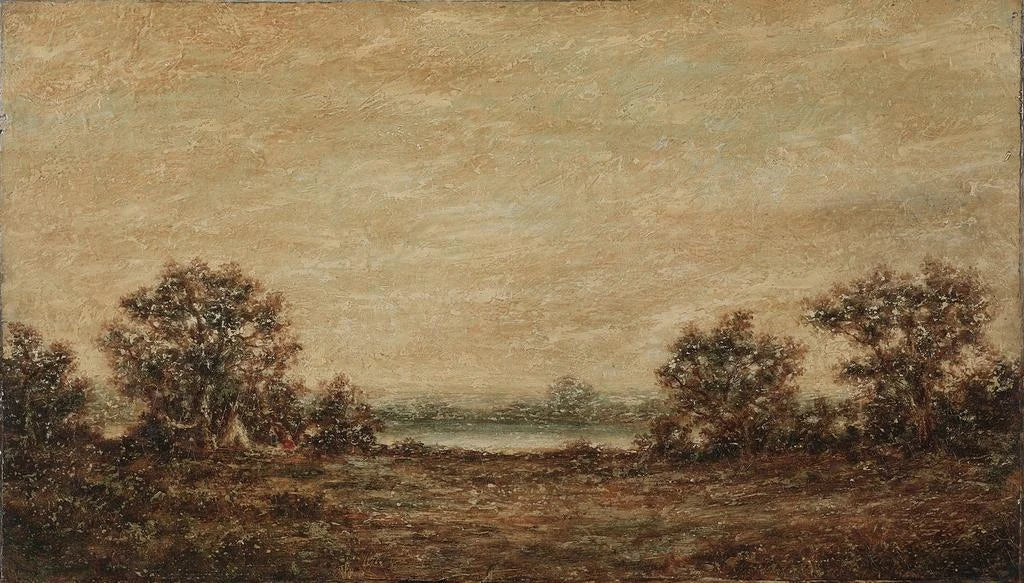 Ralph Albert Blakelock, joka toimi 1800-luvun lopulla, tunnetaan ainutlaatuisesta tyylistään, joka yhdistää romantiikkaa ja impressionismia. Hän sai vaikutteita amerikkalaisista maisemista ja eurooppalaisista mestareista, ja kehitti henkilökohtaisen lähestymistavan, jossa valo muodostaa pääaiheen. Blakelock, joka usein kamppaili henkilökohtaisten vaikeuksien kanssa, osasi muuttaa kokemuksensa voimakkaiksi taiteellisiksi teoksiksi. Hänen työnsä, vaikka hän oli elinaikanaan vähäarvoinen, sai tunnustusta vuosikymmenten myötä, tehden hänestä merkittävän hahmon amerikkalaisessa maisemamaalauksessa. "Lumière jaune" todistaa hänen kyvystään vangita hetkien taian.