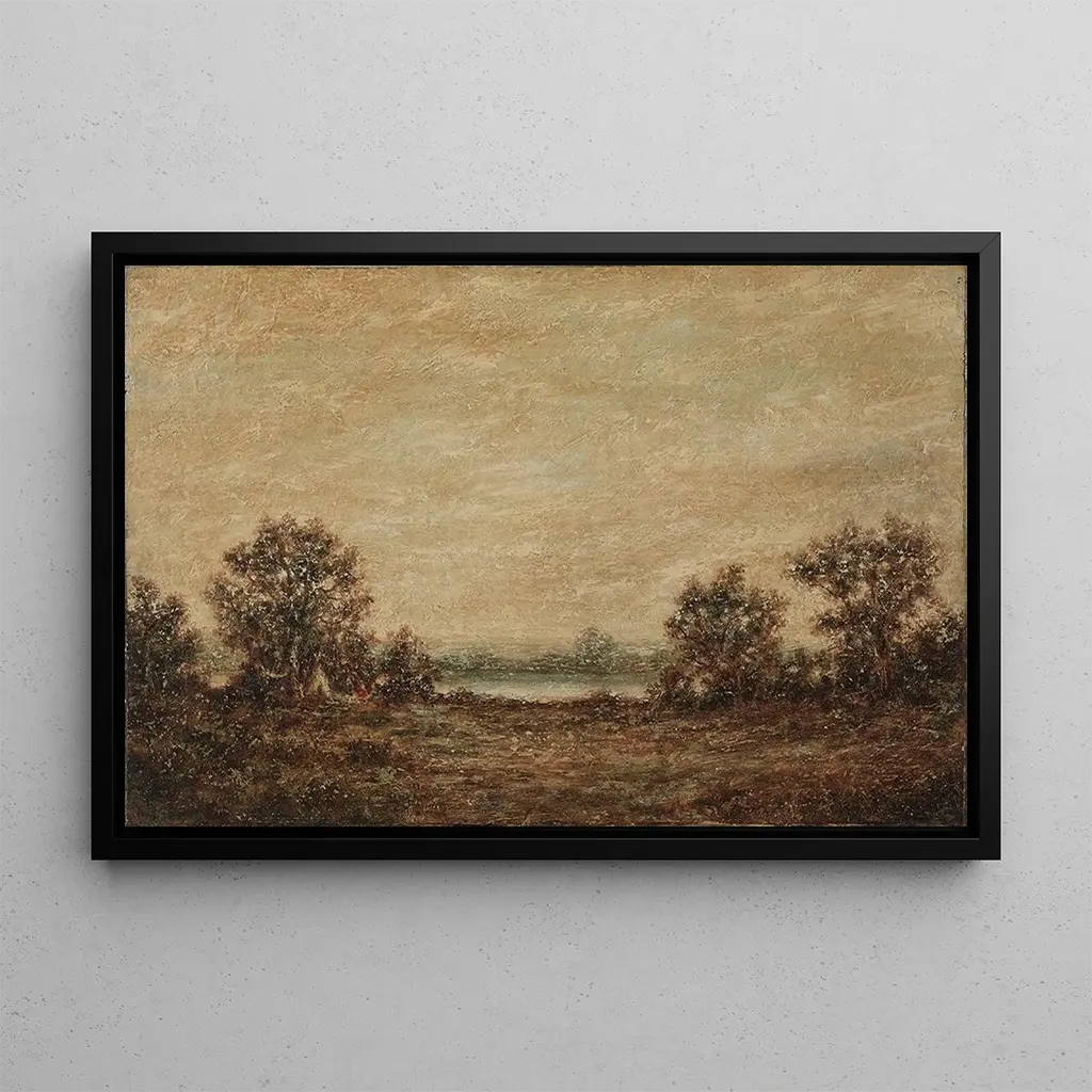 Teos "Lumière jaune" Ralph Albert Blakelockilta sukeltaa unenomaisiin maisemiin, joissa valo näyttelee keskeistä roolia. Kultaiset ja oranssit sävyt sekoittuvat harmonisesti, luoden lämpimän ja rauhoittavan tunnelman. Öljyvärimaalauksen tekniikka mahdollistaa Blakelockin vangitsevan varjojen ja valojen hienovaraisuuden, herättäen kohtauksen eloon. Majesteettiset puut, jotka kylpevät tässä kultaisessa valossa, näyttävät tanssivan tuulen mukana, kutsuen katsojan hiljaiseen ja mietiskelevään pohdintaan. Jokainen sivellinvedos paljastaa emotionaalisen syvyyden, tehden tästä taulusta todellisen ylistyksen luonnon kauneudelle.