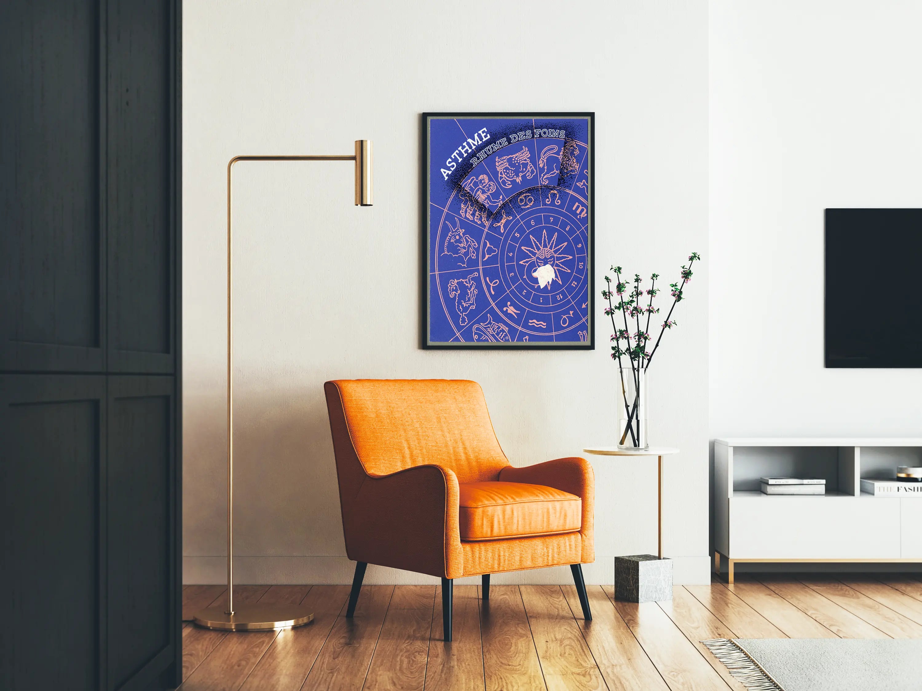Selkeä graafinen ilme ja hillitty väripaletti mahdollistavat tämän julisteen sovittamisen erilaisiin sisustustyyleihin, perinteisestä moderniin. Pyöreä muoto ja astrologiset symbolit lisäävät symboliikkaa ja mystiikkaa, mikä voi myös houkutella astrologian harrastajia, jotka haluavat personoida seinäkoristettaan.