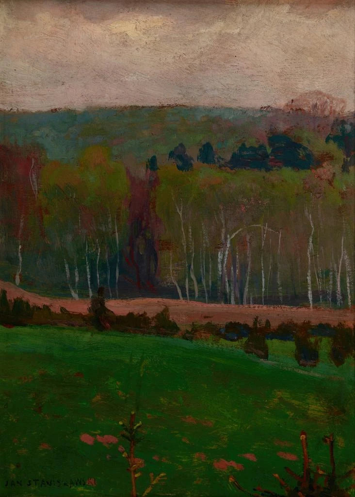 Jan Stanisławski, né en 1860, est une figure emblématique de l'impressionnisme polonais, reconnu pour sa capacité à capturer la lumière et les couleurs de la nature. Influencé par les grands maîtres européens, il a su développer un style unique qui allie observation minutieuse et interprétation personnelle. Actif à la fin du XIXe siècle et au début du XXe siècle, il a joué un rôle crucial dans l'évolution de l'art en Pologne, en introduisant des techniques modernes et en encourageant une nouvelle génération d'artistes. Son œuvre, à la fois intime et universelle, témoigne d'une profonde connexion avec le paysage polonais.