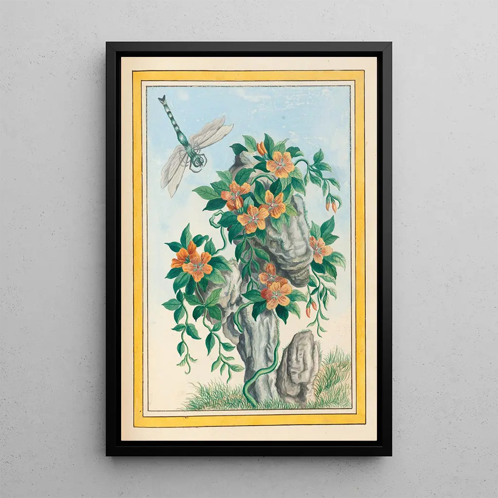 Pierre Joseph Buchozin taidegrafiikka Plantes de Chine Pl058 paljastaa värikylläisen ja yksityiskohtaisen maailman. Tämä kangas esittelee eksoottisten kasvien monimuotoisuuden, jokainen huolellisesti toteutettuna botaniikan tarkkuudella. Kirkkaat sävyt, aina rehevistä vihreistä hienovaraisiin roosiin, luovat rauhan ja ihailun tunnelman. Buchozin käyttämä akvarellitekniikka mahdollistaa valon ja tekstuurin vangitsemisen lehdistä ja kukista, tarjoten elämän ja liikkeen tunteen. Jokainen tämän teoksen elementti kutsuu katsojan rauhalliseen pohdiskeluun, ikään kuin kävelisi salaisessa puutarhassa.