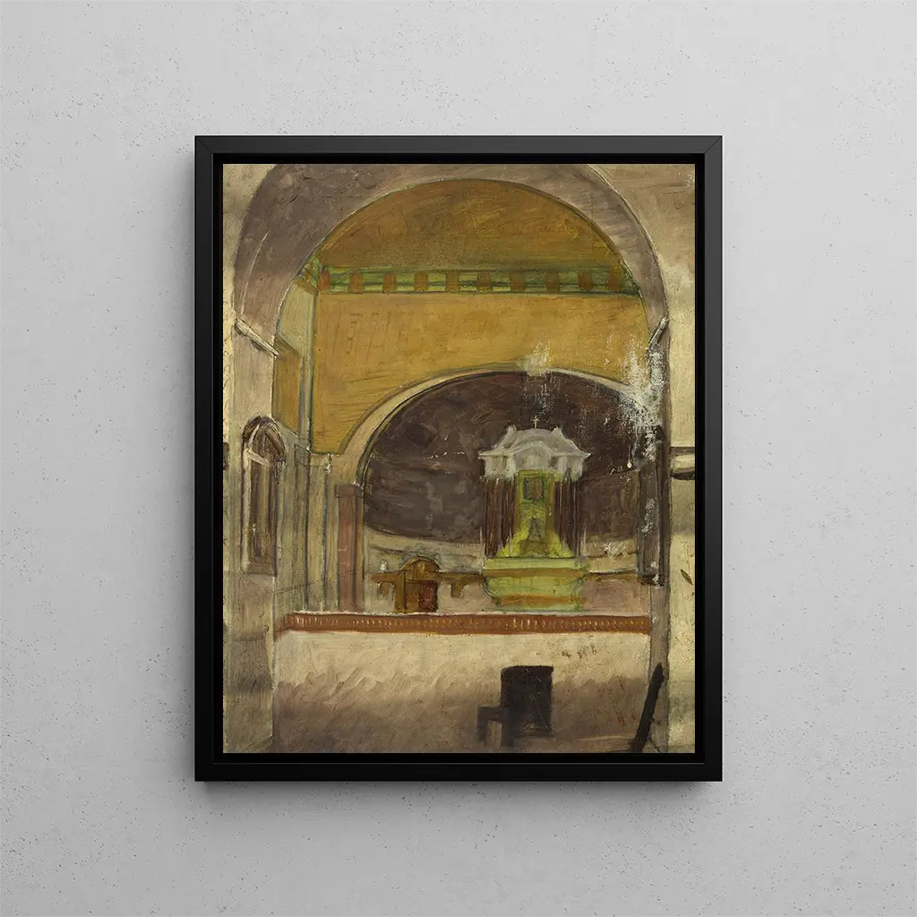 Historiallinen taiteen laaja maisema sisältää teoksia, jotka erottuvat kyvyllään vangita paikan, tunnelman tai tunteen ydin. "Assisi kirkon sisätilat - Arthur Joseph Gueniot" on yksi näistä teoksista, jotka kuljettavat katsojan pyhättöön, täynnä rauhaa ja henkisyyttä. Pehmeä valo, joka suodattuu lasimaalauksista, hienovaraiset kaaret ja harmoninen arkkitehtonisten elementtien asettelu kutsuvat sisäiseen pohdintaan. Tämä maalaus, todellinen ylistys pyhien tilojen kauneudelle, kuvaa sisäisen rauhan etsintää ja kunnioittaa keskiaikaisten kirkkojen majesteettisuutta samalla kun se omaksuu oman tyylinsä.