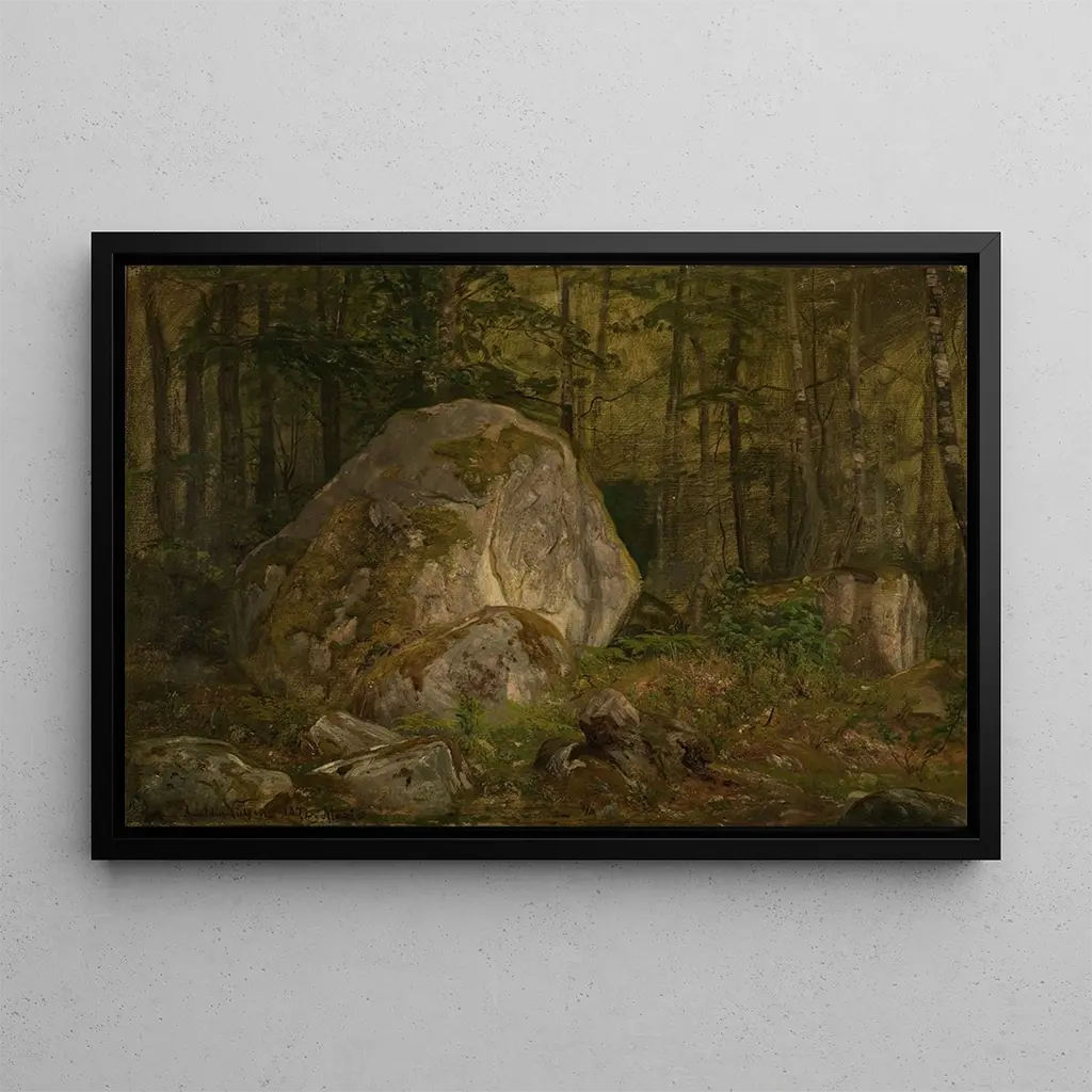 'Amaldus Nielsenin' teos 'Ulvegjeldsheien kiviopiskelut' sukeltaa raakaan ja aitoon maisemaan, jossa luonnon voima ilmenee harmaan ja maan sävyissä. Sävellys, joka keskittyy vaikuttaviin kallioihin, luo tunnelman rauhasta ja pohdiskelusta. Siveltimenvedot, sekä tarkkoja että vapaita, ilmentävät teknistä hallintaa, joka mahdollistaa kiven tekstuurin ja ympäröivän valon kokemisen. Tämä taulu kutsuu syvään sukellukseen luonnolliseen maailmaan, jossa jokainen yksityiskohta kertoo ajan ja eroosion tarinaa.