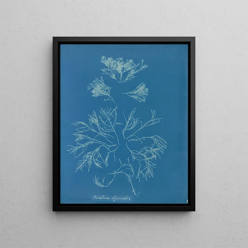 Reproduction Corallina officinalis - Anna Atkins – Johdanto kiehtovasti L "Corallina officinalis", Anna Atkinsin merkittävä teos, esittää kunnianosoituksen luonnon hauraalle ja hetkelliselle kauneudelle. Tämän teoksen kautta Atkins, kasvitieteellisen valokuvauksen pioneeri, kutsuu meidät sukeltamaan maailmaan, jossa tiede ja taide kohtaavat. Tämä 1800-luvulla luotu teos ylittää pelkän visuaalisen tallenteen ja muuttuu todelliseksi merielämän juhlistukseksi. Valitessaan esittää tämän levän, Atkins ei ainoastaan dokumentoi, vaan myös herättää luonnon runouden, kutsuen katsojan ihailemaan muotojen ja tekstuurien herkkää monimuotoisuutta, jotka asuttavat meriämme. Teoksen tyyli ja ainutlaatuisuus Anna Atkinsin tyyliä leimaa innovatiivinen lähestymistapa ja ainutlaatuinen taiteellinen herkkyys. Käyttäen cyanotype-tekniikkaa hän onnistuu vangitsemaan levien siluetin vaikuttavalla tarkkuudella. "Corallina officinalis" -teoksen siniset sävyt luovat kiehtovan kontrastin orgaanisten muotojen valkoisuuteen. Tämä värivalinta ei ainoastaan viittaa veteen, vaan myös syvyyksiin merissä. Jokainen yksityiskohta ja ääriviiva korostuu tämän menetelmän avulla, korostaen elävän luonnon ja ympäristön harmoniaa. Teoksen ainutlaatuisuus piilee myös siinä, että se muuntaa tieteellisen aiheen pohdiskelevaksi taideteokseksi, jossa katsojan katse ohjautuu muotojen kauneuden kautta. Taiteilija ja hänen vaikutuksensa Anna Atkins, usein ensimmäisenä naisvalokuvaajana pidetty, vaikutti aikakauteensa rohkeudellaan ja visionsa voimalla. Yhdistämällä kasvitieteen ja taiteen hän avasi tien monille visuaalisille tutkimuksille, jotka seurasivat. Hänen intohimonsa luonnontieteisiin näkyy jokaisessa teoksessaan, ja hänen työnsä "Corallina officinalis" on täydellinen esimerkki tästä yhdistelmästä. Atkins ei ainoastaan edistänyt valokuvauksen kehittymistä, vaan hän myös loi dialogin taiteen ja tieteen välillä, kannustaen tulevia sukupolvia tutkimaan tätä suhdetta. Hänen perintönsä elää edelleen, inspiroiden nykytaiteilijoita uudelleenmäärittelemään luonnon käsitystään ja sisällyttämään tieteellisiä elementtejä luomuksiinsa. Erinomainen seinäkoriste Artem Legrandilta